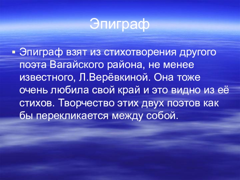 Эпиграф взят из стихотворения другого поэта Вагайского района, не менее