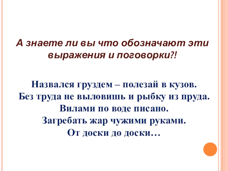 А знаете ли вы что обозначают эти выражения и поговорки?!