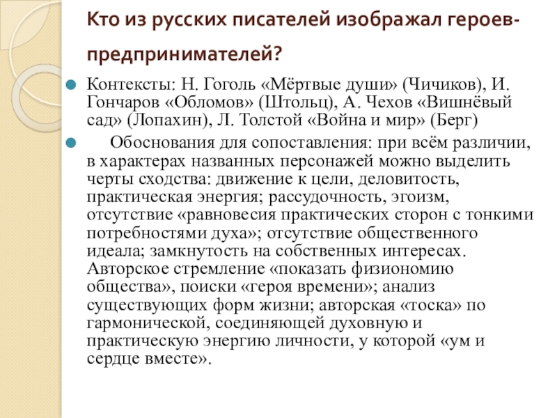 Слайд 32Кто из русских писателей изображал героев-предпринимателей?