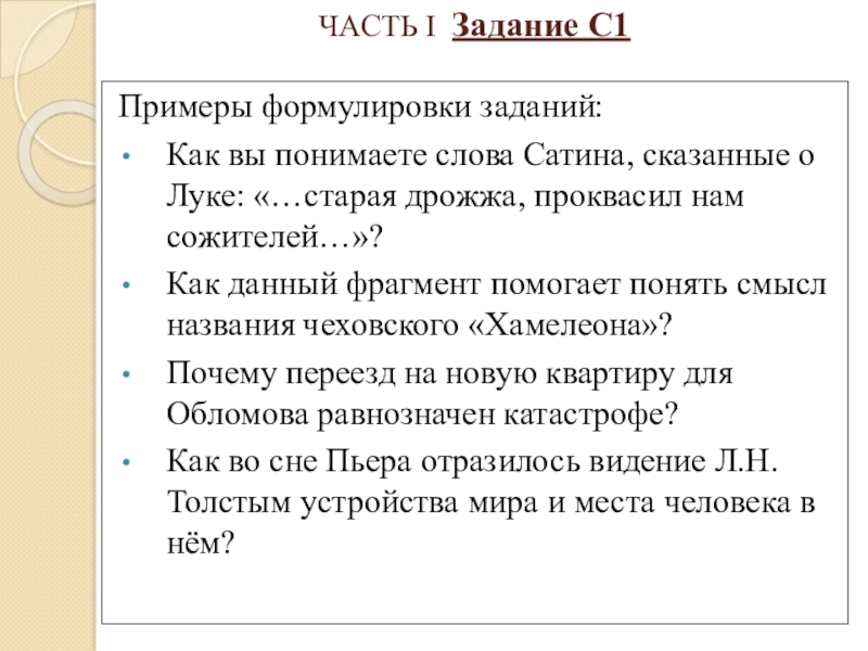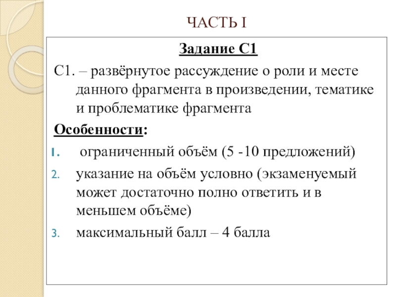 Задания части С1-С4 подразумевают прямой краткий ответ на поставленный