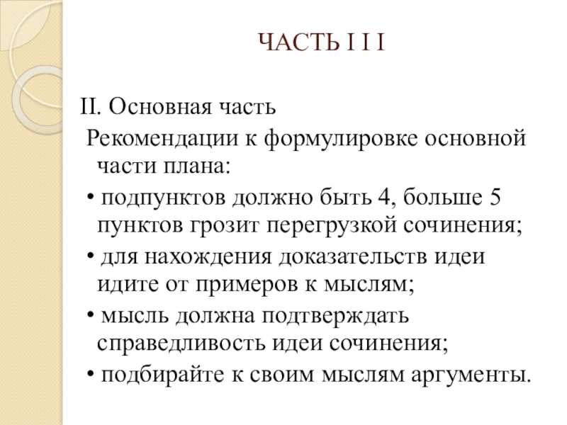 • подпунктов должно быть 4, больше 5 пунктов грозит перегрузкой сочинения;