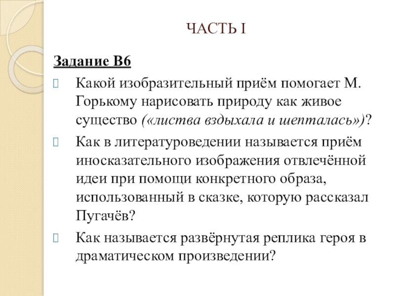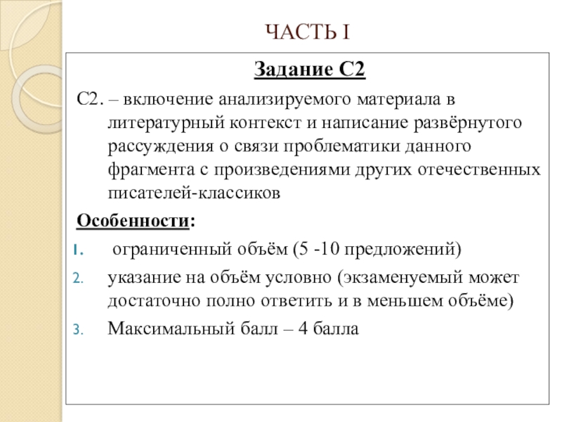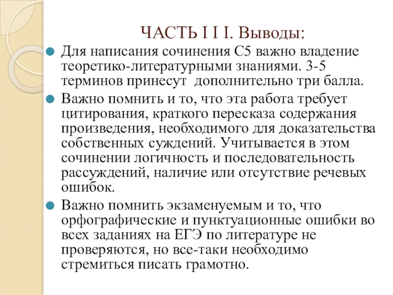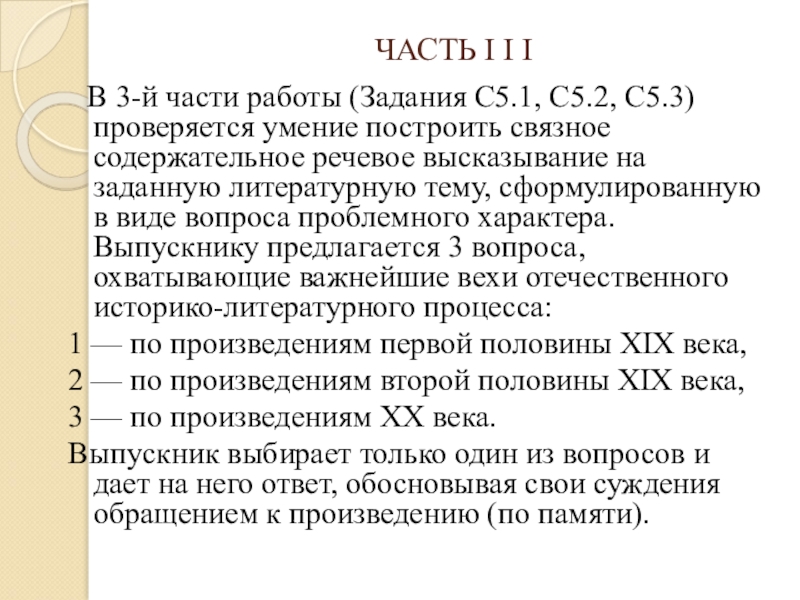 часть III – С5 - развёрнутый ответ на ОДИН из трёх вопросов проблемного характера на литературную тему по выбору экзаменуемого