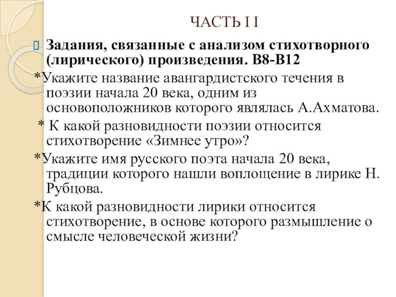 часть II - задания, связанные с анализом стихотворного (лирического) произведения