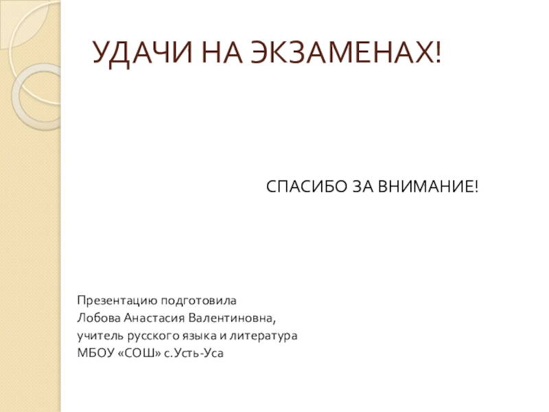 Слайд 49УДАЧИ НА ЭКЗАМЕНАХ!