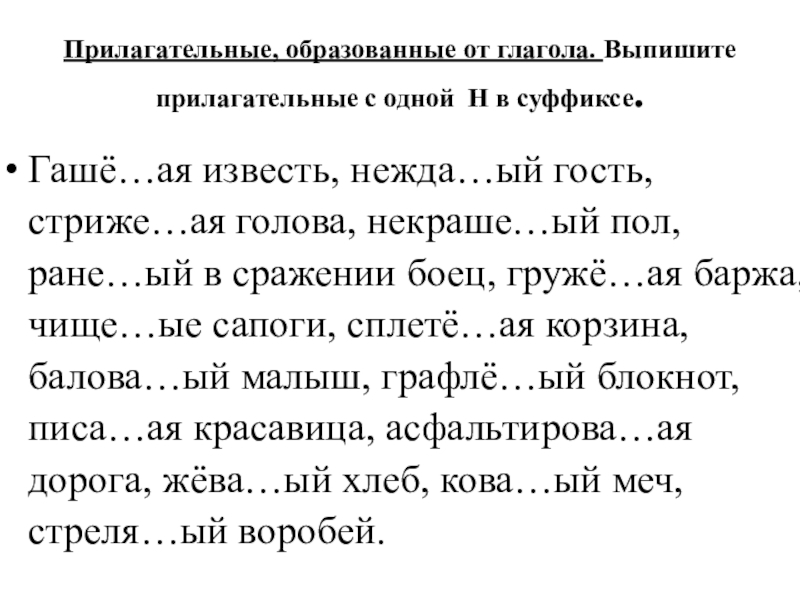 Торжестве..ый, лимо..ый, лебеди..ый, пусты..ы, зако..ы, кури..ый, лу..ый, искусстве..ый, соломе..ый, це..ый, искус..ы, кожа..ый, стари..ый, клюкве..ый, серебря..ый, прекрас..ы.