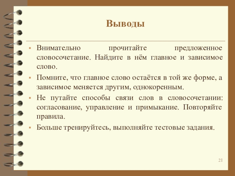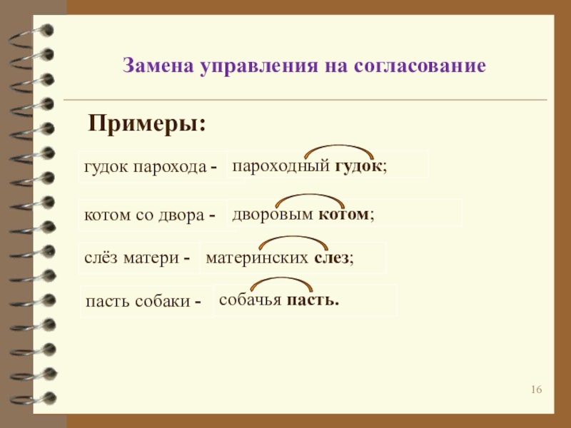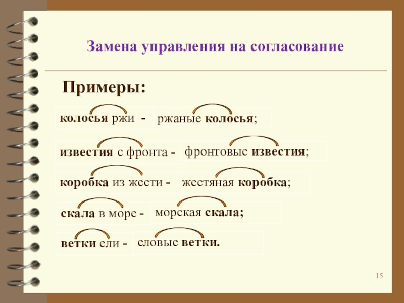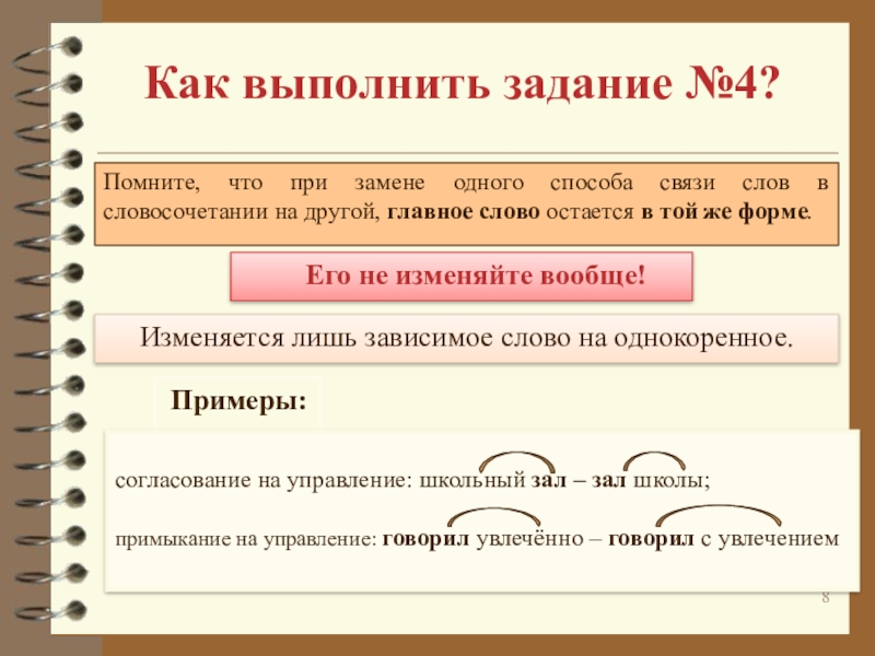 Изменяется лишь зависимое слово на однокоренное.