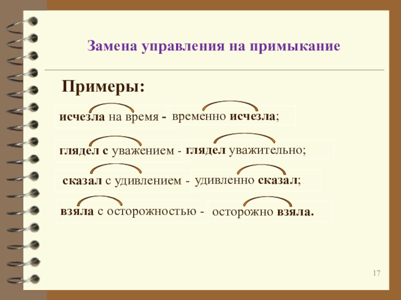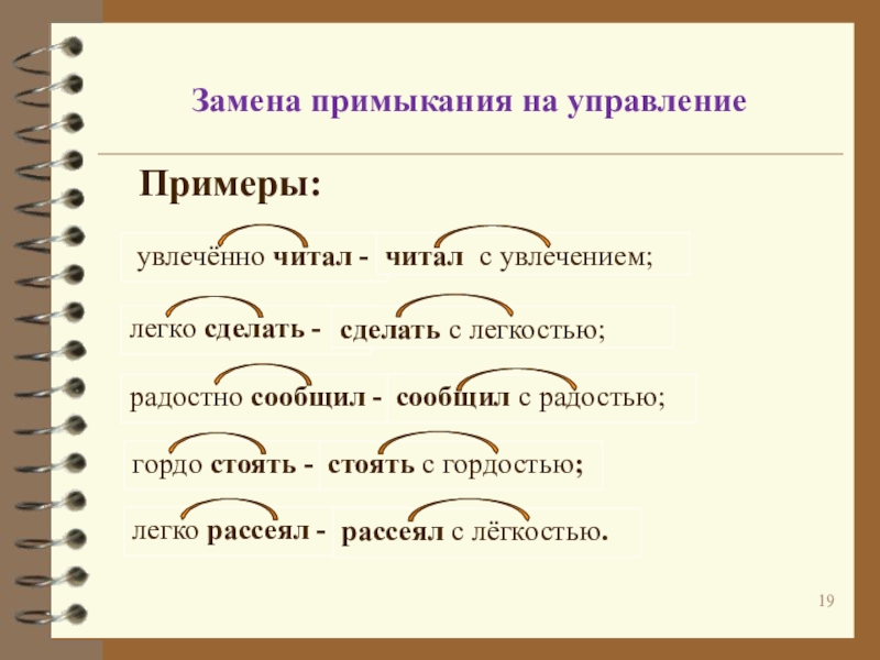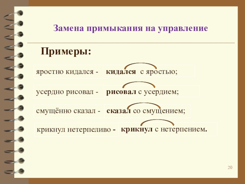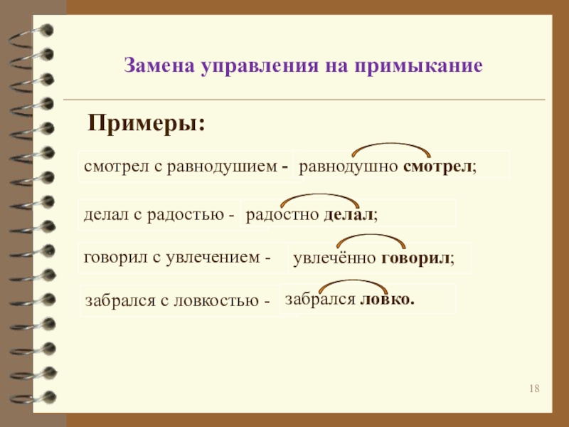примыкание на управление: говорил увлечённо – говорил с увлечением