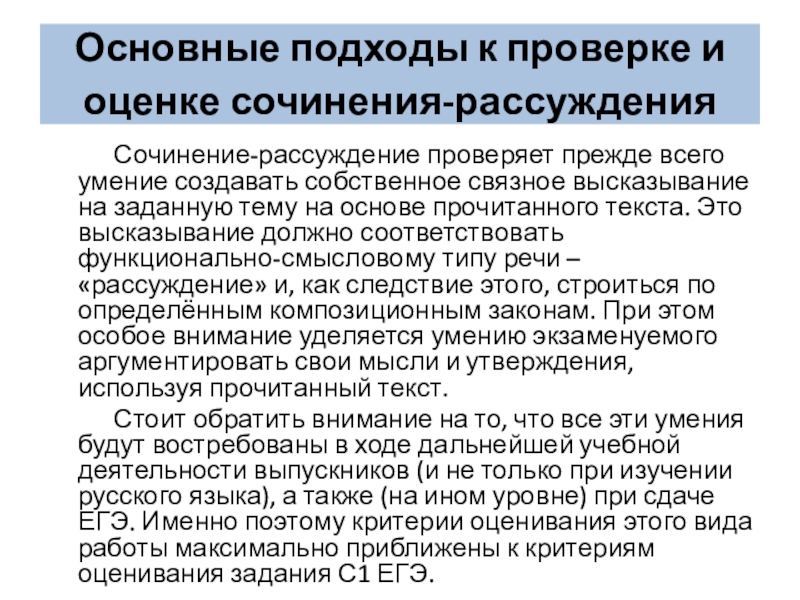 Слайд 2Основные подходы к проверке и оценке сочинения-рассуждения