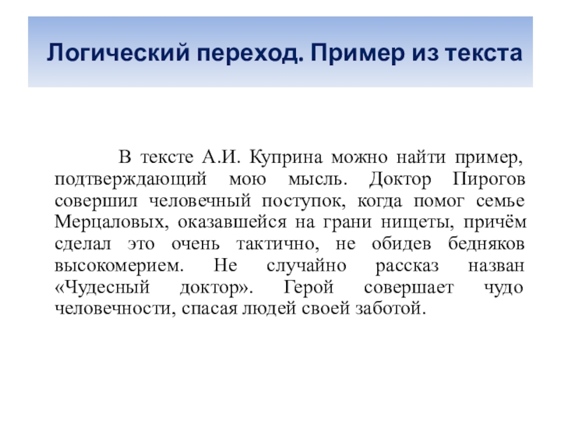 Слайд 17 Логический переход. Пример из текста