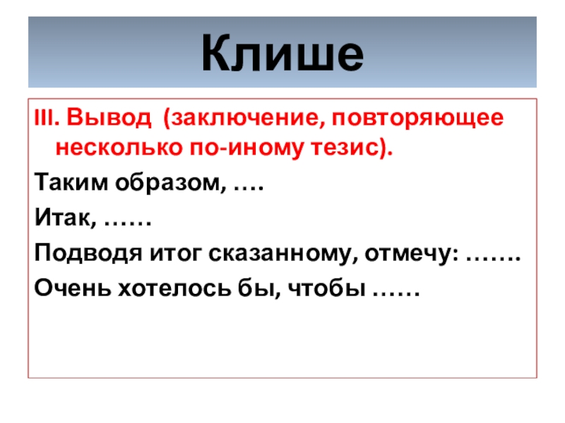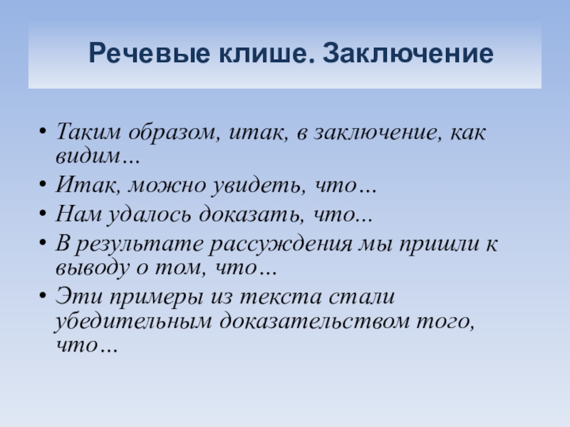 Слайд 41 Речевые клише. Заключение