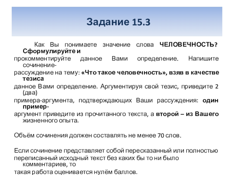 рассуждение на тему: «Что такое человечность», взяв в качестве тезиса