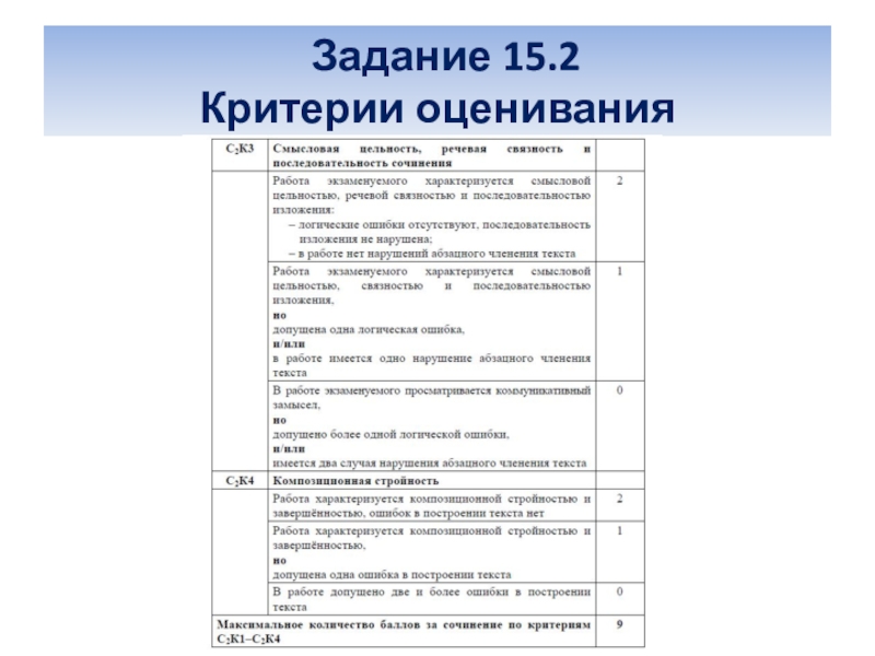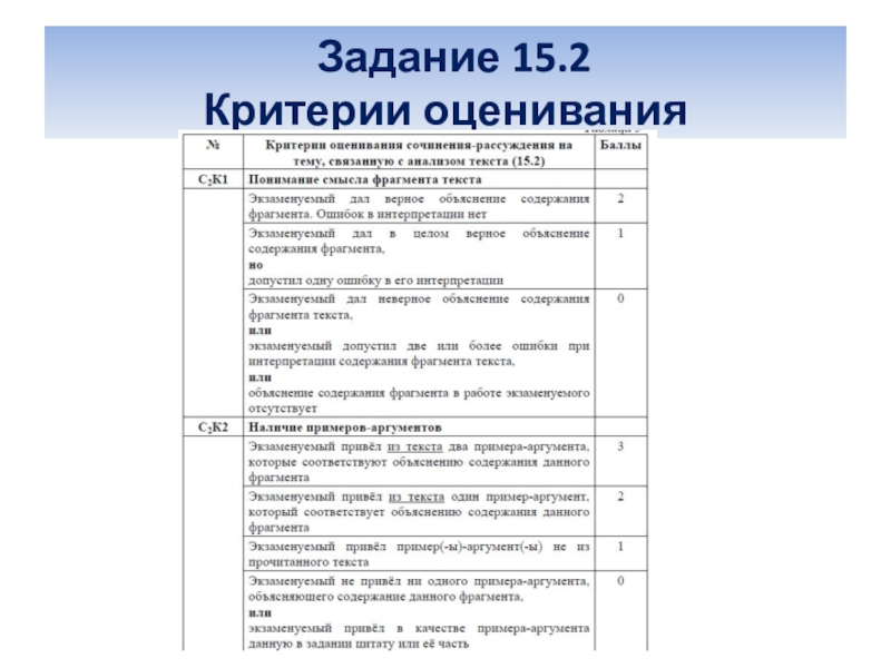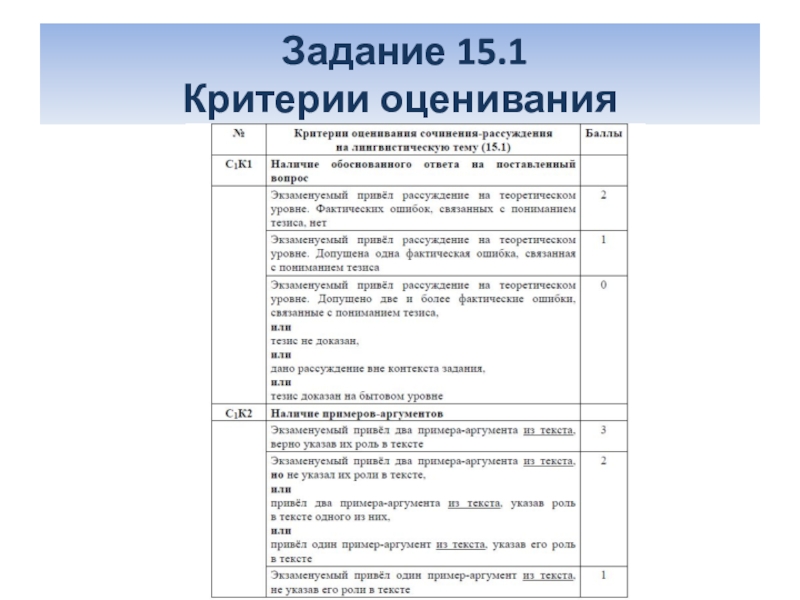 Слайд 7Критерии оценивания сочинения-рассуждения