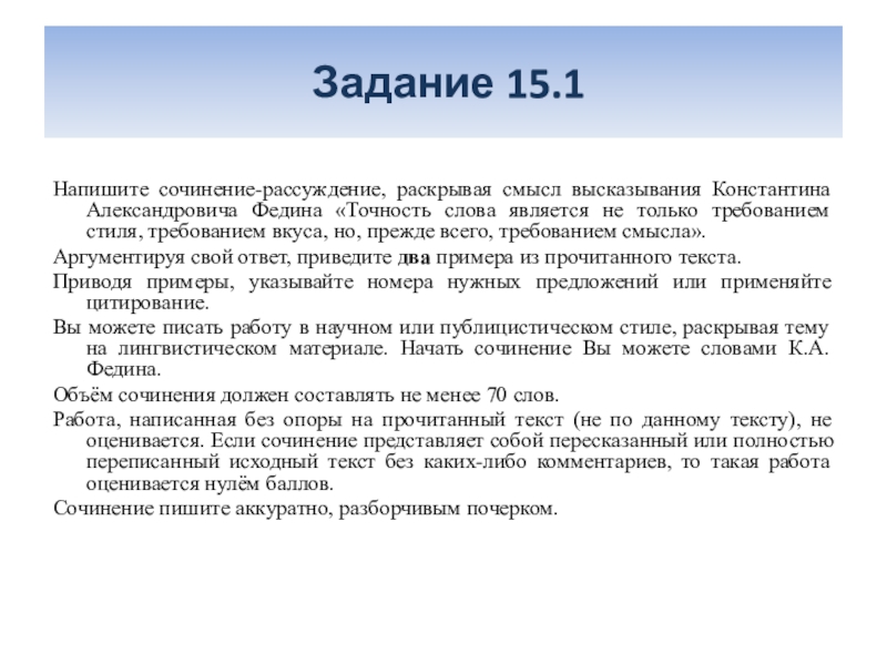 Напишите сочинение-рассуждение, раскрывая смысл высказывания Константина Александровича Федина «Точность