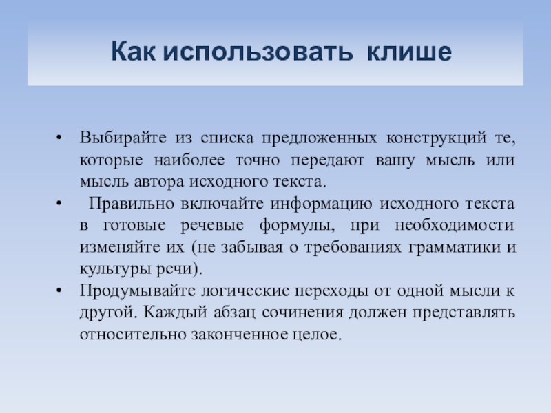 Слайд 42 Как использовать клише