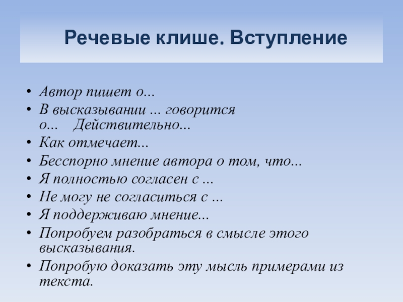 Слайд 39 Речевые клише. Вступление