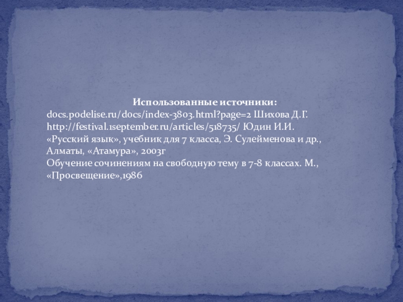 Обучение сочинениям на свободную тему в 7-8 классах. М., «Просвещение»,1986
