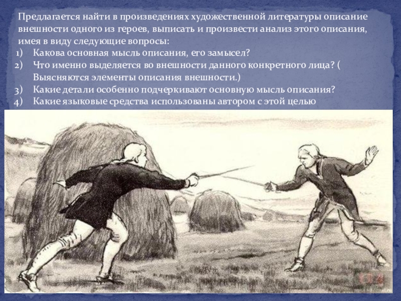 Слайд 9Предлагается найти в произведениях художественной литературы описание внешности одного из героев,