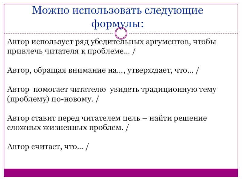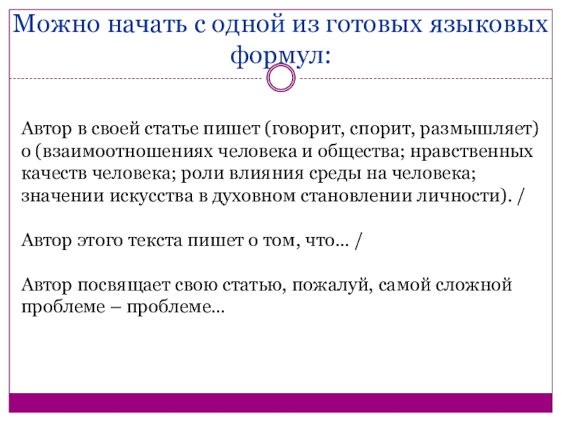 Слайд 6Можно начать с одной из готовых языковых формул: