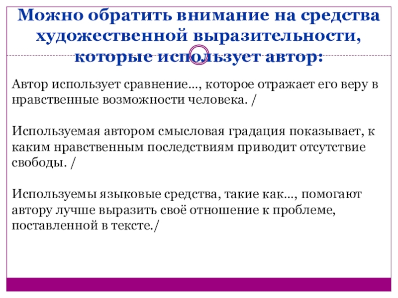 Слайд 13Можно обратить внимание на средства художественной выразительности, которые использует автор: