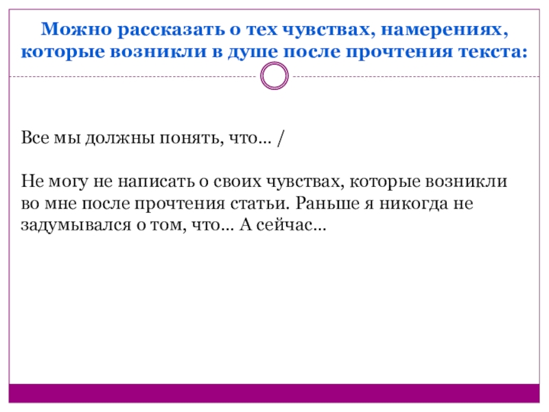 Слайд 21Можно рассказать о тех чувствах, намерениях, которые возникли в душе после