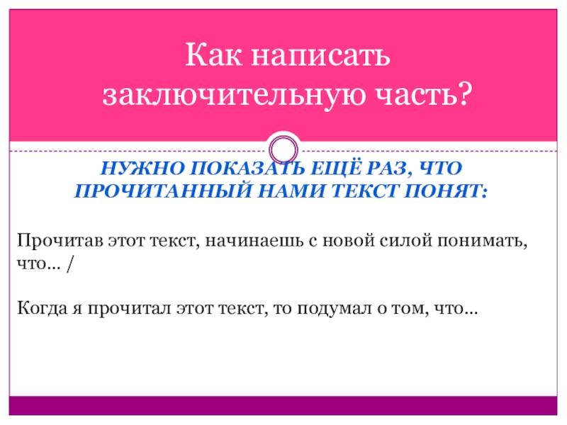 Слайд 20Нужно показать ещё раз, что прочитанный нами текст понят: