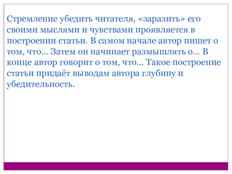 Слайд 9Стремление убедить читателя, «заразить» его своими мыслями и чувствами проявляется в