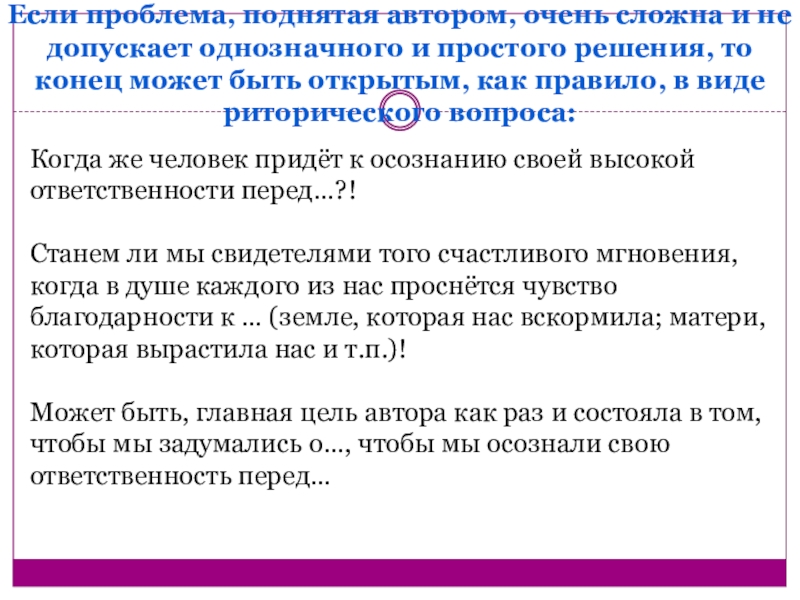 простого решения, то конец может быть открытым, как правило, в виде риторического вопроса: