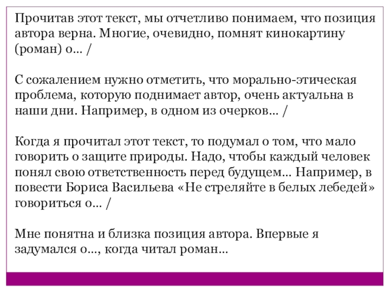 Слайд 17Прочитав этот текст, мы отчетливо понимаем, что позиция автора верна. Многие,