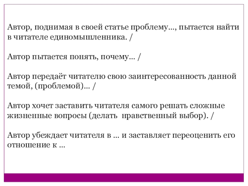Слайд 11Автор, поднимая в своей статье проблему…, пытается найти в читателе единомышленника.