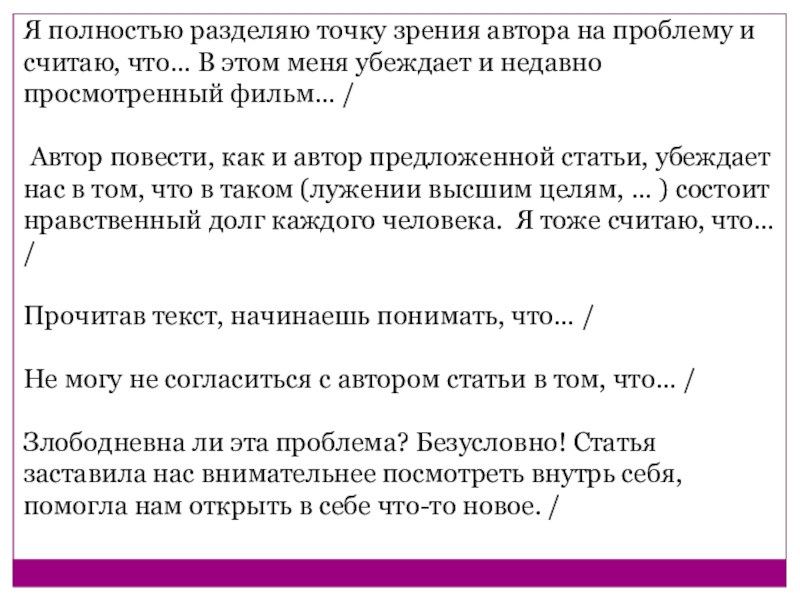Слайд 16Я полностью разделяю точку зрения автора на проблему и считаю, что…