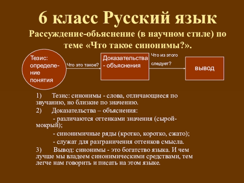 3) Вывод: синонимы - это богатство языка. И чем лучше мы владеем синонимическими средствами, тем легче нам говорить и писать на этом языке.
