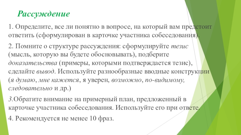Рассуждение1. Определите, все ли понятно в вопросе, на который вам предстоит ответить (сформулирован в карточке участника собеседования).
