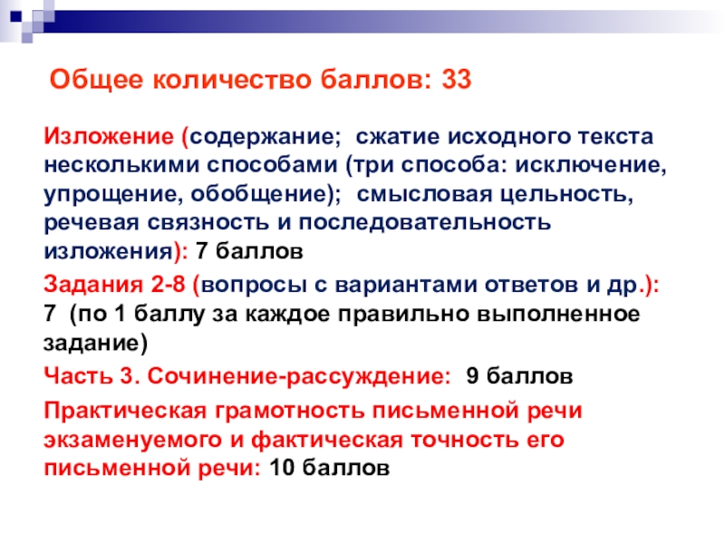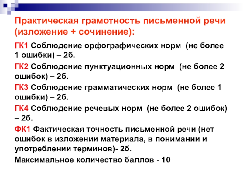 Практическая грамотность письменной речи экзаменуемого и фактическая точность его письменной речи: 10 баллов