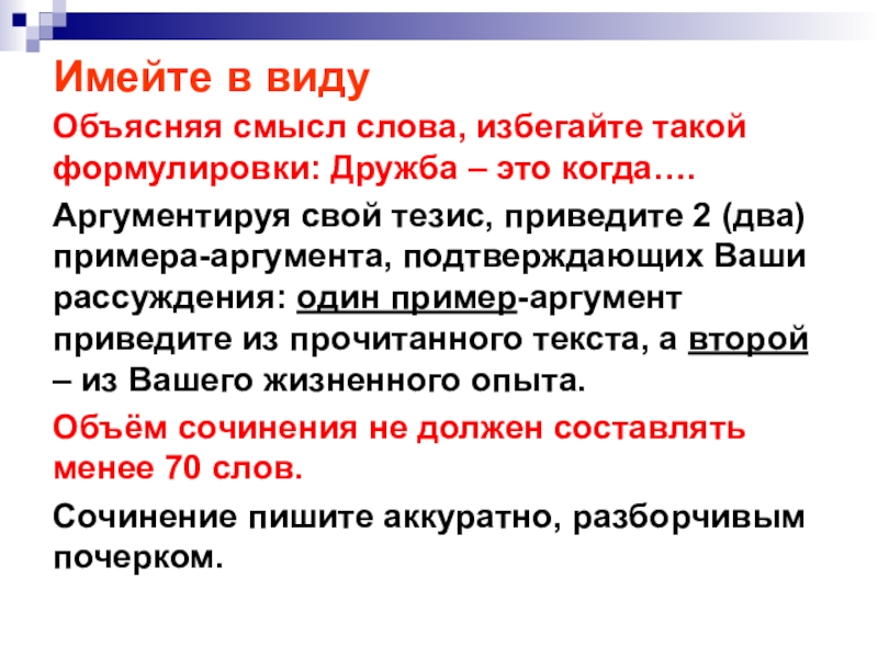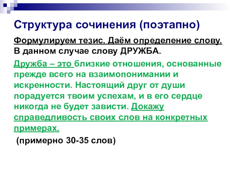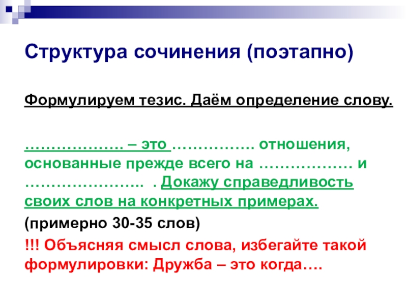 !!! Объясняя смысл слова, избегайте такой формулировки: Дружба – это когда….