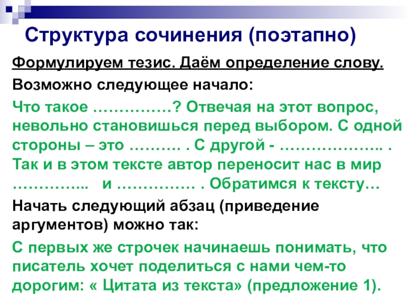 Формулируем тезис. Даём определение слову. В данном случае слову