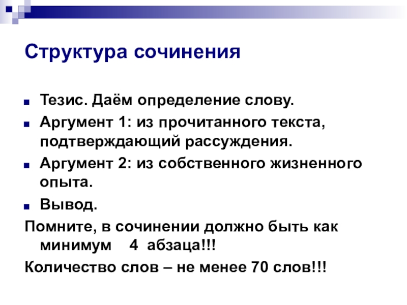 Помните, в сочинении должно быть как минимум 4 абзаца!!!