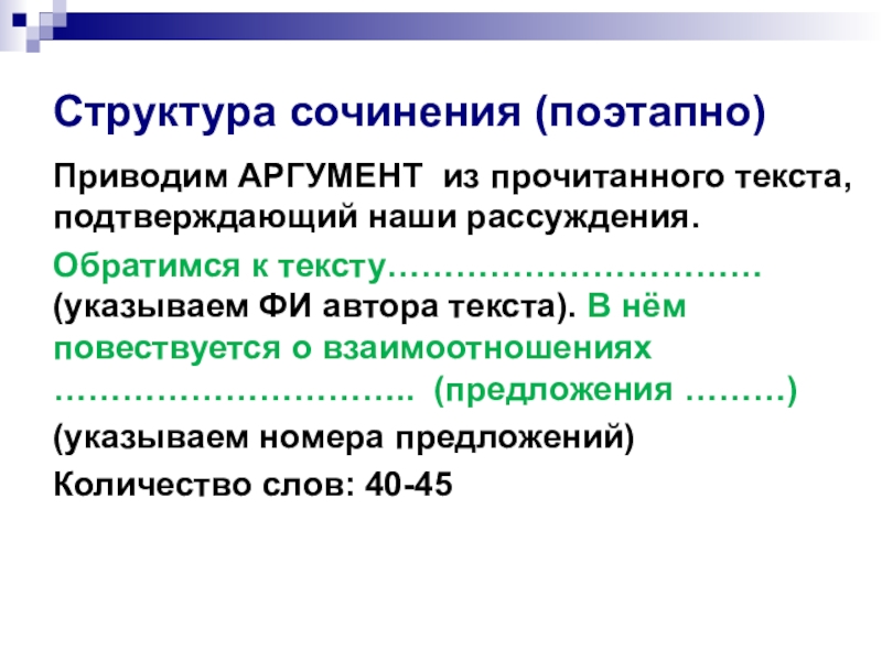 Приводим АРГУМЕНТ из прочитанного текста, подтверждающий наши рассуждения.