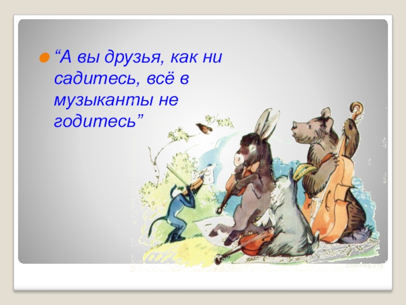 “А вы друзья, как ни садитесь, всё в музыканты не годитесь”