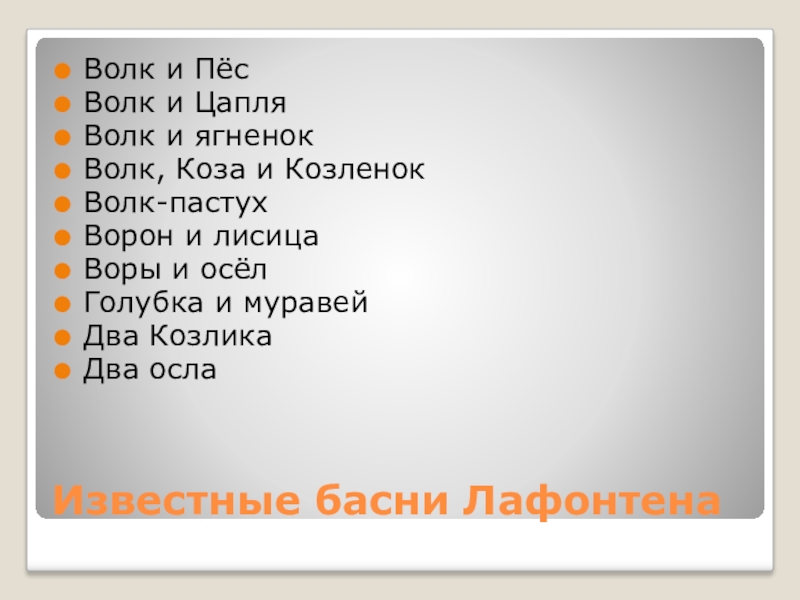 Слайд 4Известные басни Лафонтена