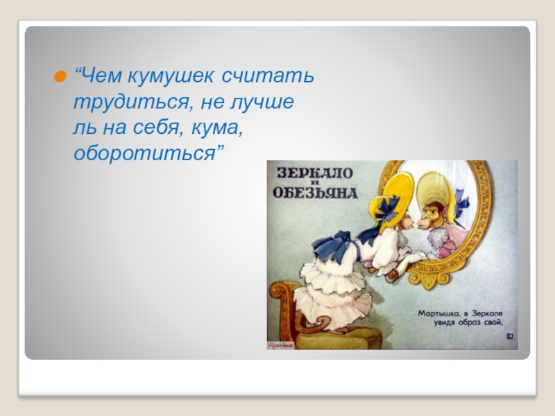 “Чем кумушек считать трудиться, не лучше ль на себя, кума, оборотиться”