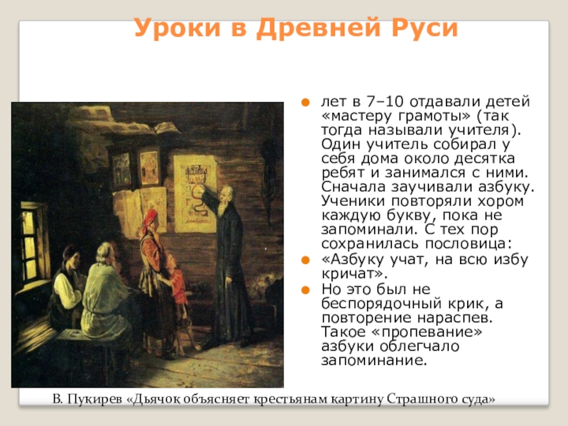 В. Пукирев «Дьячок объясняет крестьянам картину Страшного суда»