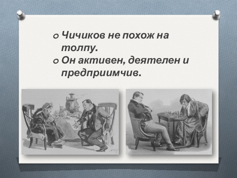 Слайд 8Чичиков не похож на толпу.
