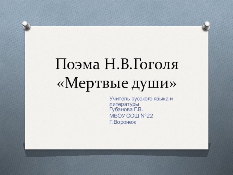 Поэма Н.В.Гоголя «Мертвые души»Учитель русского языка и литературы Губанова Г.В.МБОУ СОШ №22Г.Воронеж