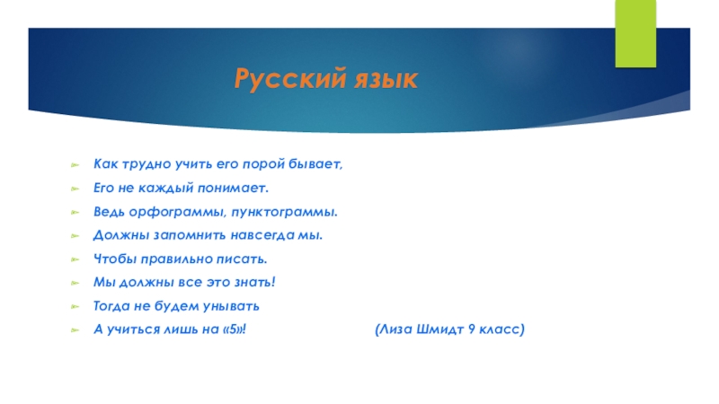 А учиться лишь на «5»! (Лиза Шмидт 9 класс)