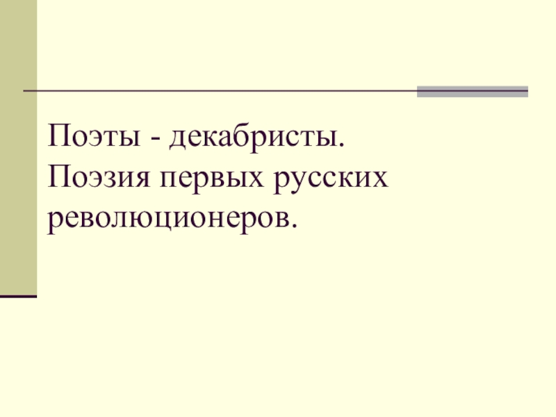 Слайд 1Поэты - декабристы. Поэзия первых русских революционеров.