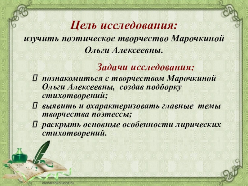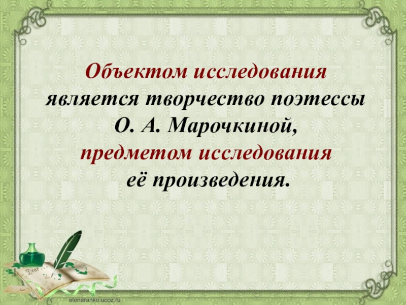 Объектом исследования является творчество поэтессы О. А. Марочкиной,