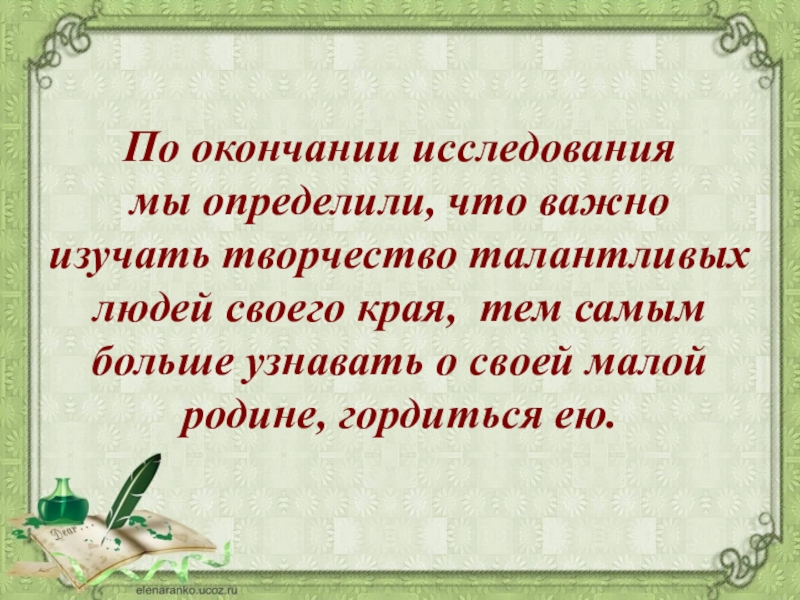 своего края, тем самым больше узнавать о своей малой родине, гордиться ею.