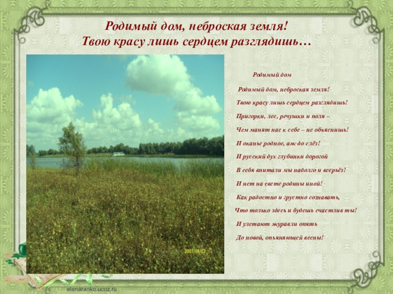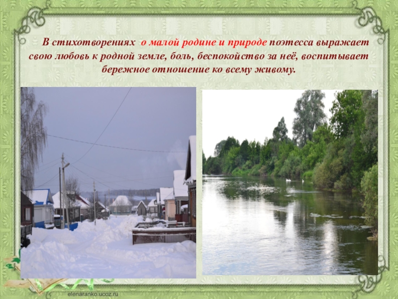 Слайд 12 В стихотворениях о малой родине и природе поэтесса выражает
