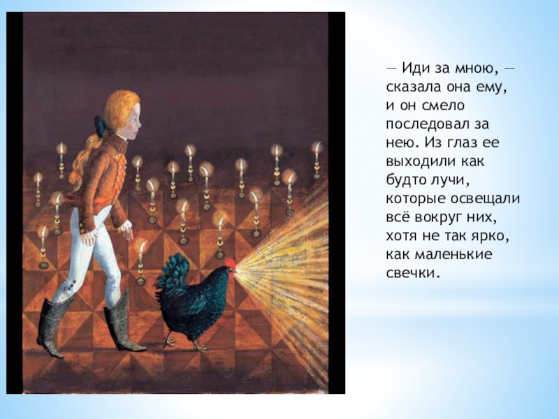 Слайд 7— Иди за мною, — сказала она ему, и он смело