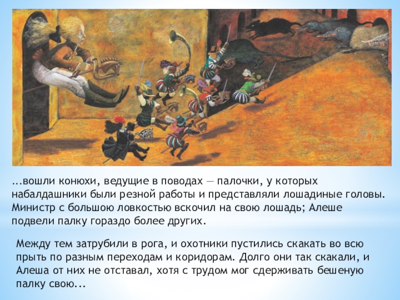 Слайд 17...вошли конюхи, ведущие в поводах — палочки, у которых набалдашники были